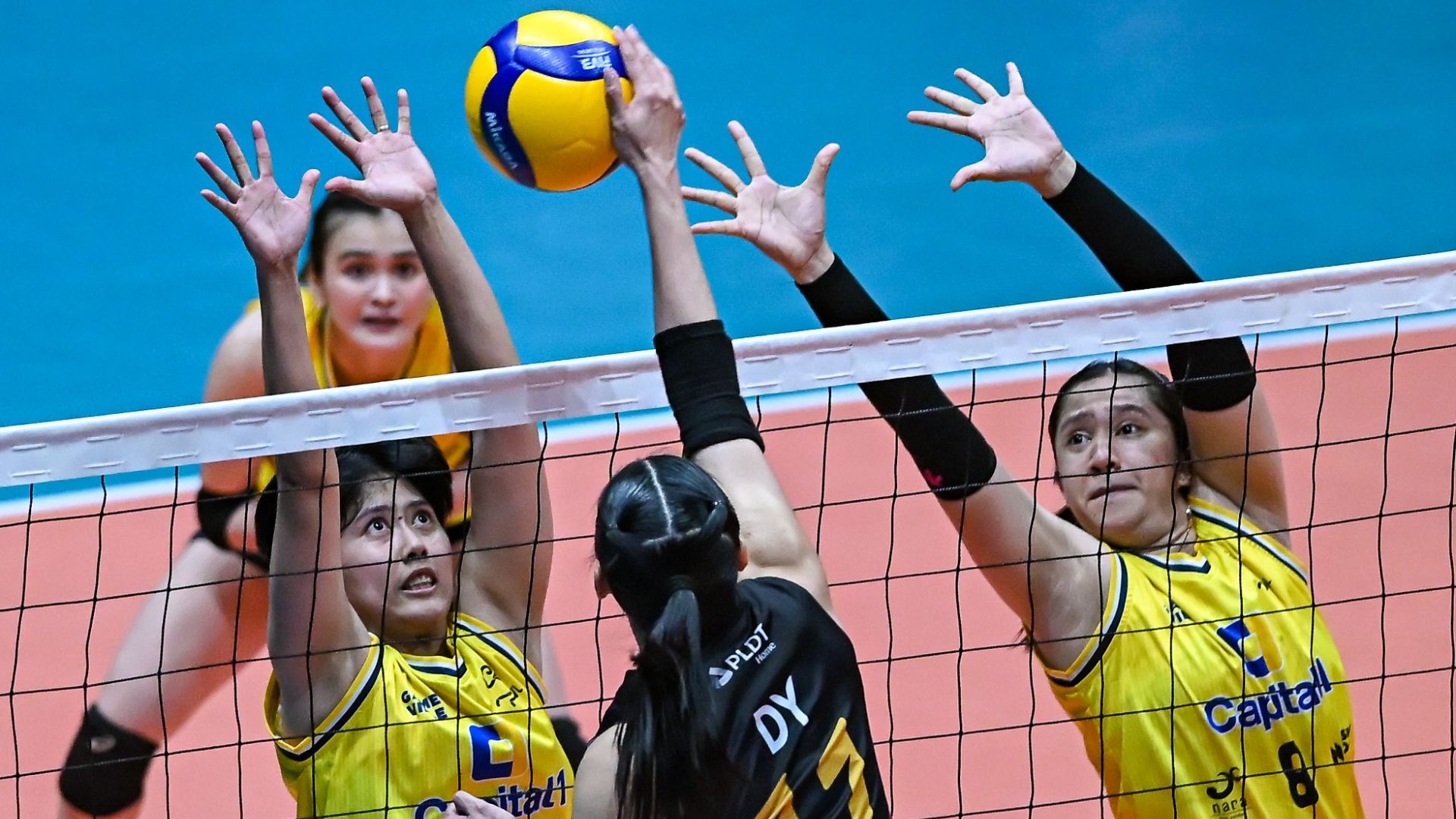 Kianna Dy spikes the ball past Capital1's blockers. | Photo: PVL