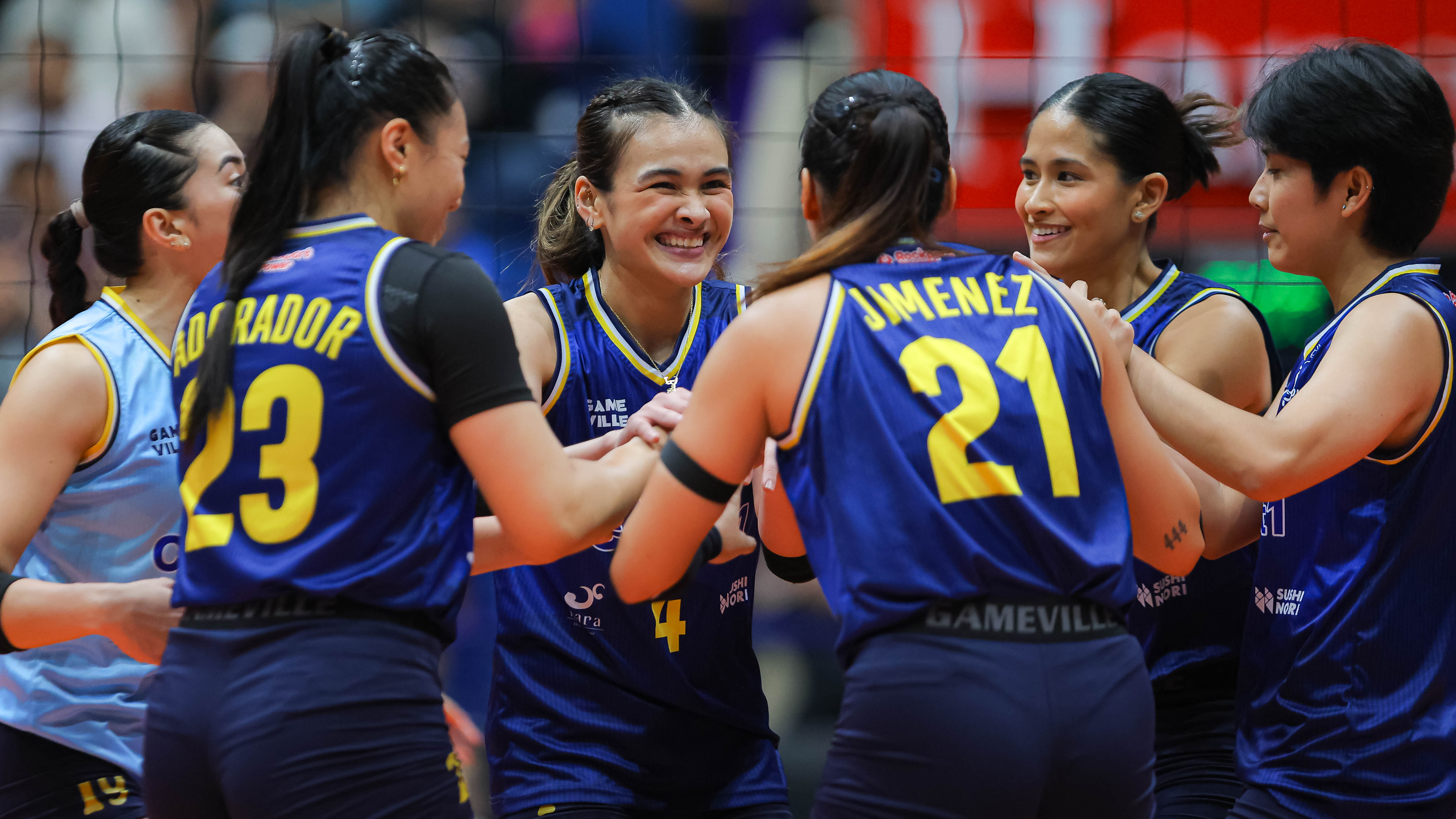 Bella Belen celebrates with her Capital1 teammates during their match against Creamline. | Photo: RM Chua/One Sports